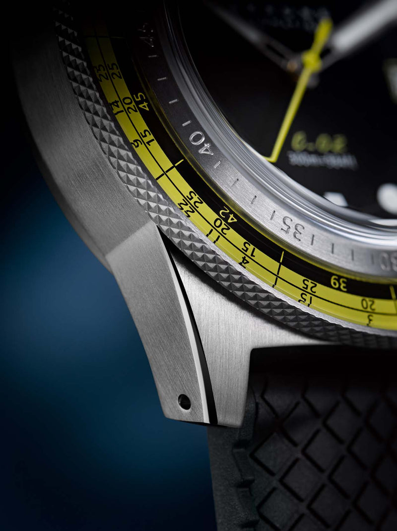 La C-02, c’est une montre pensée pour le terrain, conçue pour rester lisible et fiable quelles que soient les conditions. On a retravaillé les aiguilles, les index, la lunette et le cadran pour une visibilité maximale sous l’eau, avec un contraste renforcé et des proportions bien ajustées. Pour assurer une lecture facile même quand la lumière baisse, on utilise du Super-LumiNova suisse haute performance, notamment le BGW9, appliqué en couches épaisses.