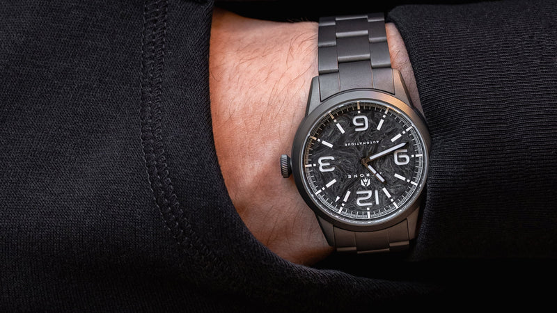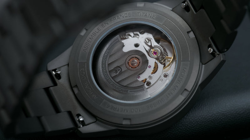 Modèle Lume – Collection C-03 Carbon Fury, 39 mm. Pour fêter nos 10 ans le bracelet titane, d’une valeur de 130 euros, est offert et directement inclus dans votre commande.