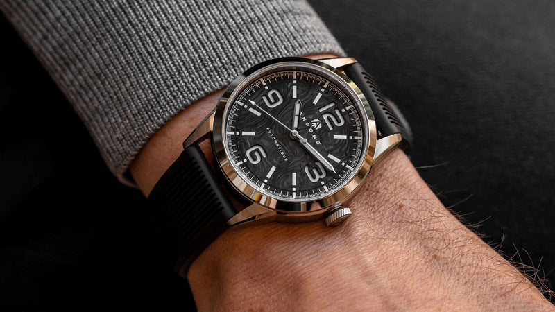 Modèle Gris – Collection C-03 Carbon Fury, 39 mm. Pour fêter nos 10 ans le bracelet titane, d’une valeur de 130 euros, est offert et directement inclus dans votre commande.